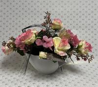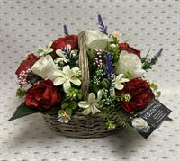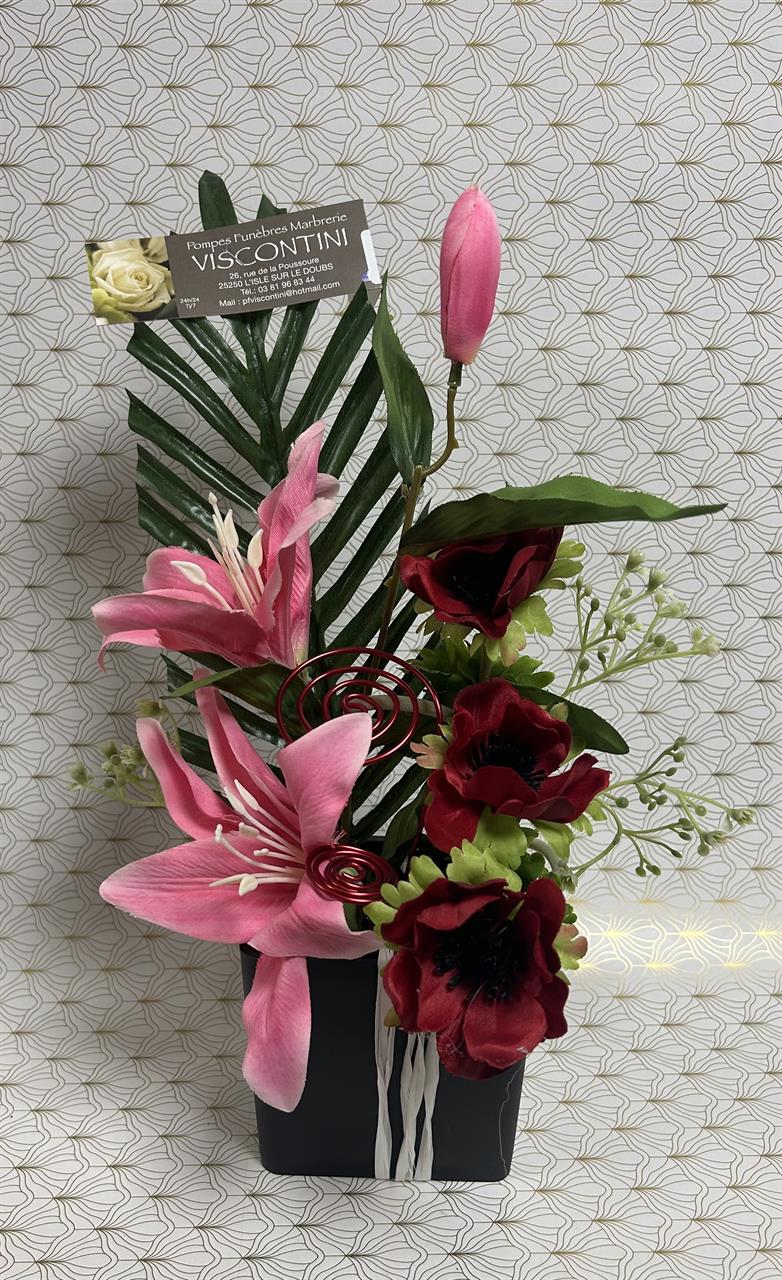 | Coupe de fleurs naturelles Composition en fleurs naturelle en forme de barque ( 50-60 cm), avec soit une dominante de Rouge, ou Rose, ou Blanc, merci de nous préciser