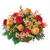 Photo non contractuelle, nous composerons le panier en fonction des couleurs choisies par la famille à la différence du pot plastique, dans cette composition le pot est en osier ou paille selon les saisons