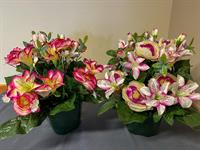 Pot mélange de fleurs petite taille. Selon disponibilité en magasin. Photo non contractuelle. Prix de vente TTC.