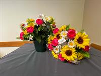 Petite coupe en hauteur mélange de fleurs. Selon disponibilité en magasin. Photo non contractuelle. Prix de vente TTC.