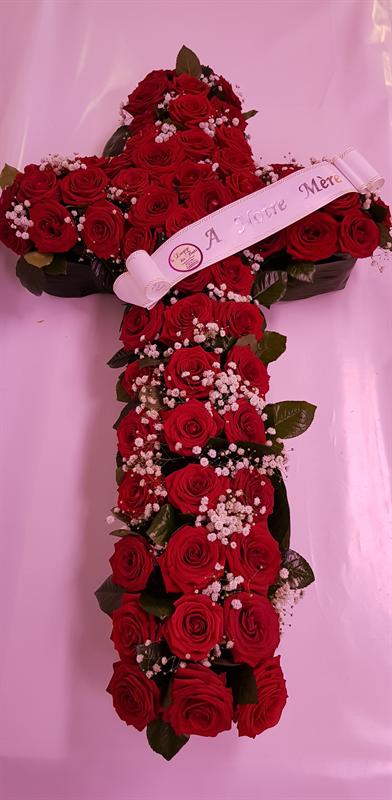 Photo non contractuelle | CROIX DE ROSES TAILLE 2 Croix de roses, dimension 100 cm x 50 cm