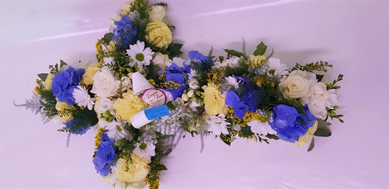 Photo non contractuelle | CROIX DE FLEURS TONS COLORÉS TAILLE 1 Croix de fleurs, tons colorés, dimension 80 cm x 40 cm