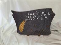 | Plaque 3 inters Plume Plaque en granit avec une lithogravure représentant une plume et une envolée d'oiseau.