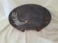 | Plaque 2 inters pêcheur Plaque en granit ovale avec une lithogravure de pêcheur.