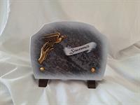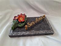 | Plaque 3 inters pêcheur Plaque en ardoise avec socle en marbre et la représentation d'un pêcheur.