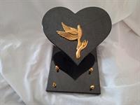 | Plaque Coeur 2 inters bronze Plaque en granit en forme de coeur avec un socle rectangulaire en marbre.