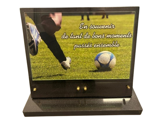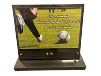 | Plaque funéraire " football " Plaque funéraire granit noir sur embase