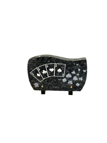 | Plaque funéraire  " jeu de cartes " Plaque funéraire Altu Création sur fond de couleur blanc "jeu de cartes" sur embase granit 30x20 cm