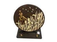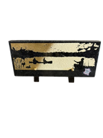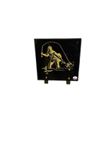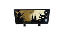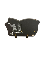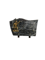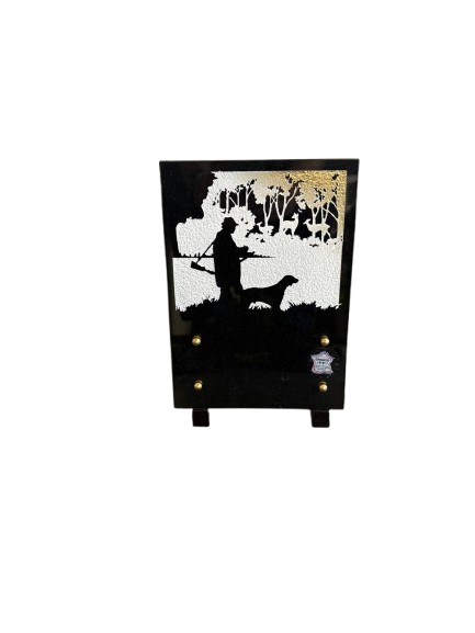 | Plaque funéraire " chasse " Plaque funéraire en granit noir sur embase métallique