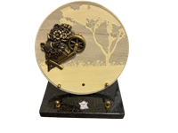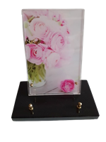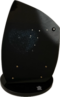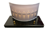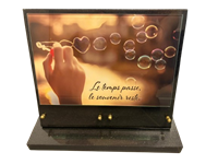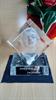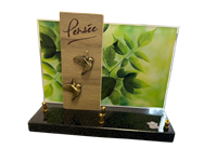 sur socle en cristal et plaque inox gravé laser avec texte personnalisé