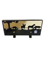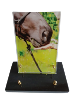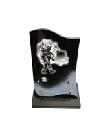 | Plaque funéraire  "le Cheval" Plaque funéraire thème "le Cheval" avec embase granit noir 22 cm x 15cm