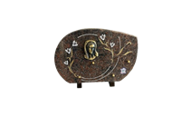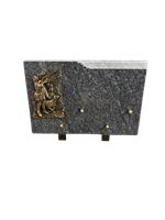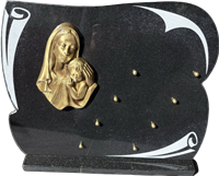 | Plaque funéraire " bronze vierge " plaque funéraire granit noir sur embase