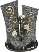 | Plaque funéraire en  granit avec roses et  liseré d'or  Plaque funéraire en granit  gris avec des roses avec un liseré d'or de chaque coté  sur embase