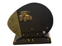 | Plaque funéraire " tracteur " Plaque funéraire granit noir avec embase
