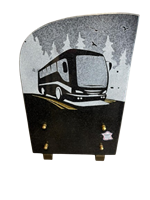 | Plaque funéraire " autocar  " Plaque funéraire granit noir sur embase métallique