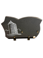 | Plaque funéraire " clef " Plaque funéraire en granite noir sur embase métallique