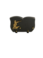 | Plaque funéraire " chasseur " Plaque funéraire en granit noir sur embase métallique