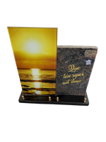 | Plaque funéraire " coucher de soleil " Plaque funéraire en granit sur embase granit noir