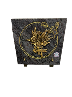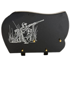 | Plaque funéraire " chasseur " Plaque funéraire granit noir sur embase métallique
