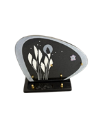 | Plaque funéraire " champs de blé " Plaque funéraire granit noir sur embase