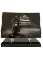 | Plaque funéraire " le motard " Plaque funéraire Altu Création sur fond de couleur noir et blanc avec le motard