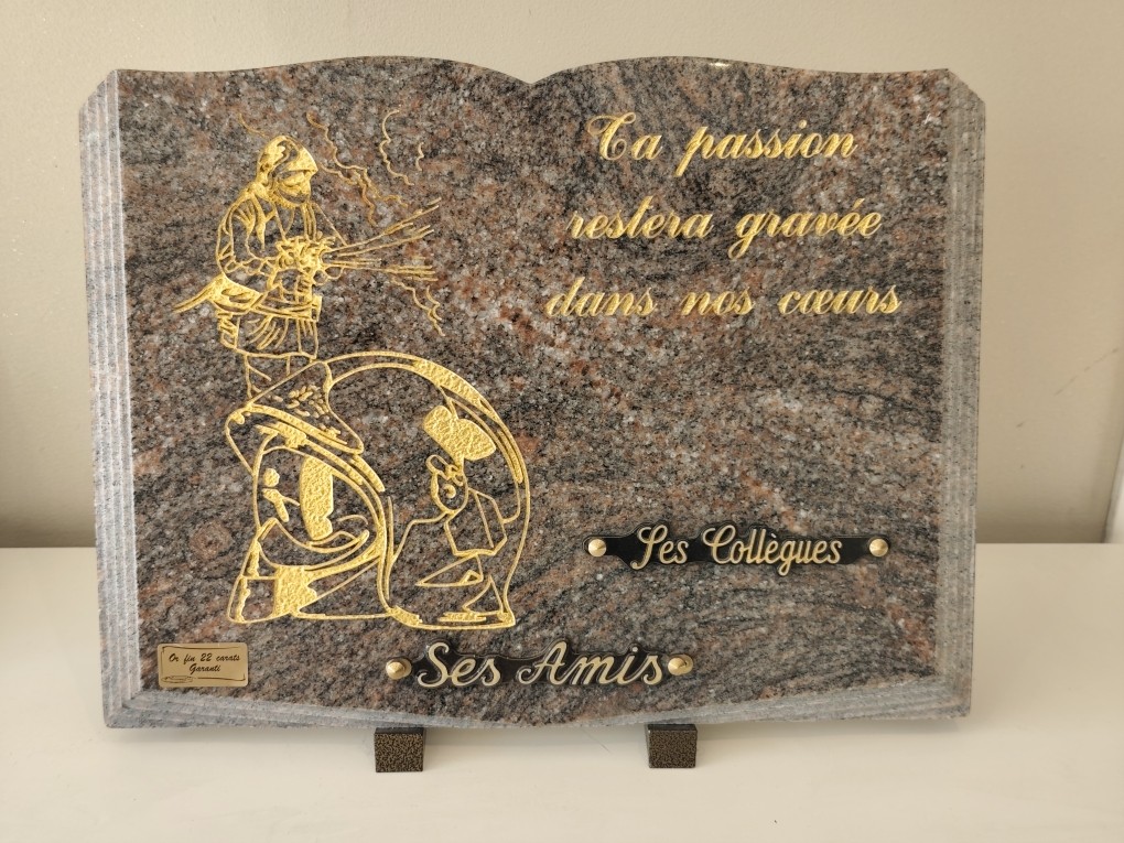 Plaque en granit sur socle Dimensions H25 cm x L28 cm Bronze 2 inters modifiables/personnalisables