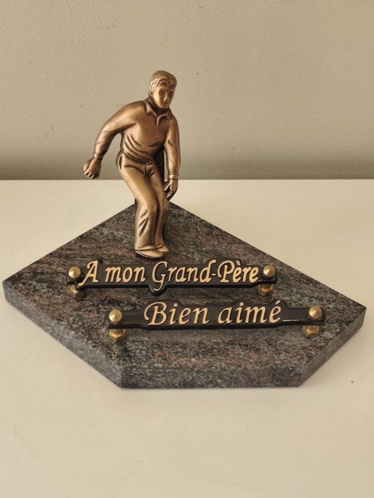 Plaque granit sur socle Dimensions H 30 cm x L 25 cm Gravure Bronze 2 inters modifiables/personnalisables
