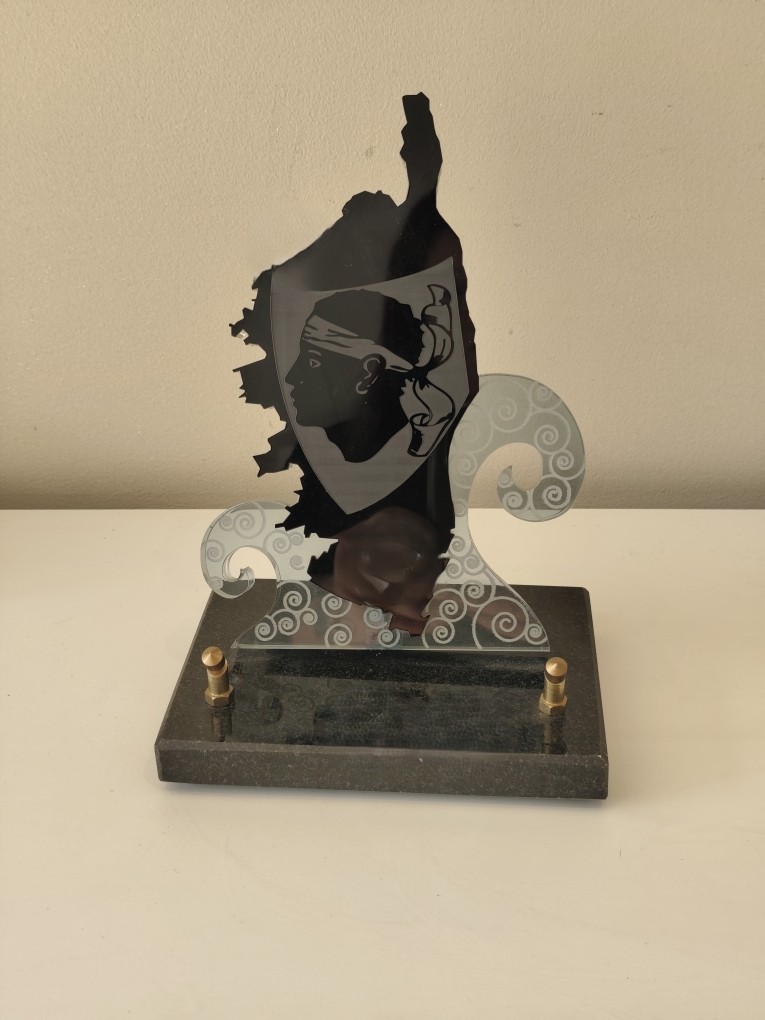 Plaque granit sur socle Dimensions H 45 cm x L 40 cm Dessin sablage Statuette bronze Gravure or fin 4 inters modifiables/personnalisables