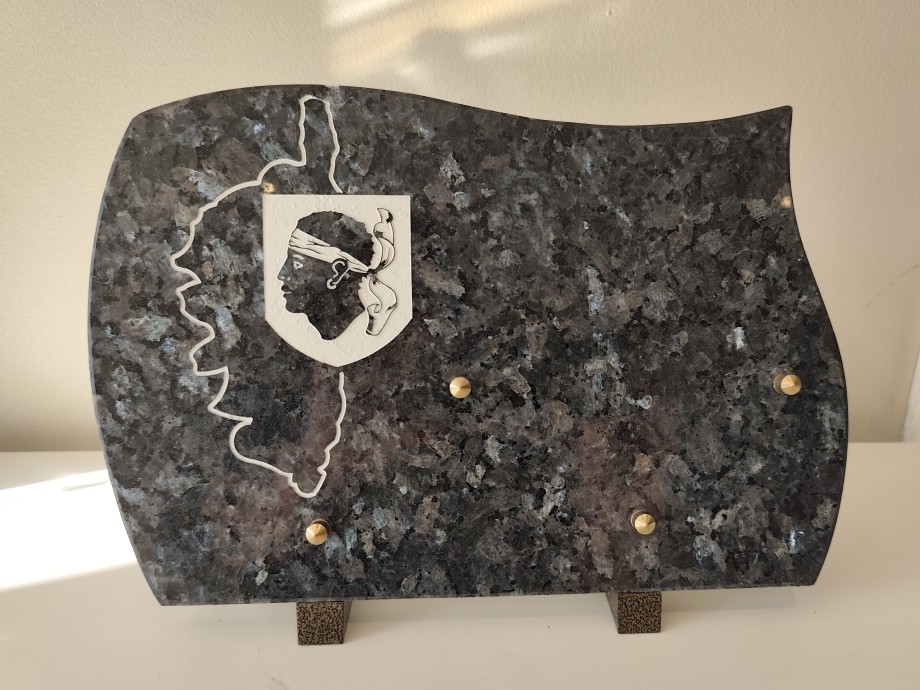 Plaque granit sur pieds Dimensions H 20 cm x L 30 cm Dessin sablage corse 2 inters modifiables/personnalisables