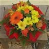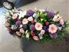 Gerbe de fleurs, composition lestée. Jolie composition de fleurs claires. Bon pouvoir couvrant sur le cercueil. De 1m20.