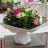 Très jolie composition de fleurs de couleur pastel. Composition lestée. 80 cm. Dominante blanche