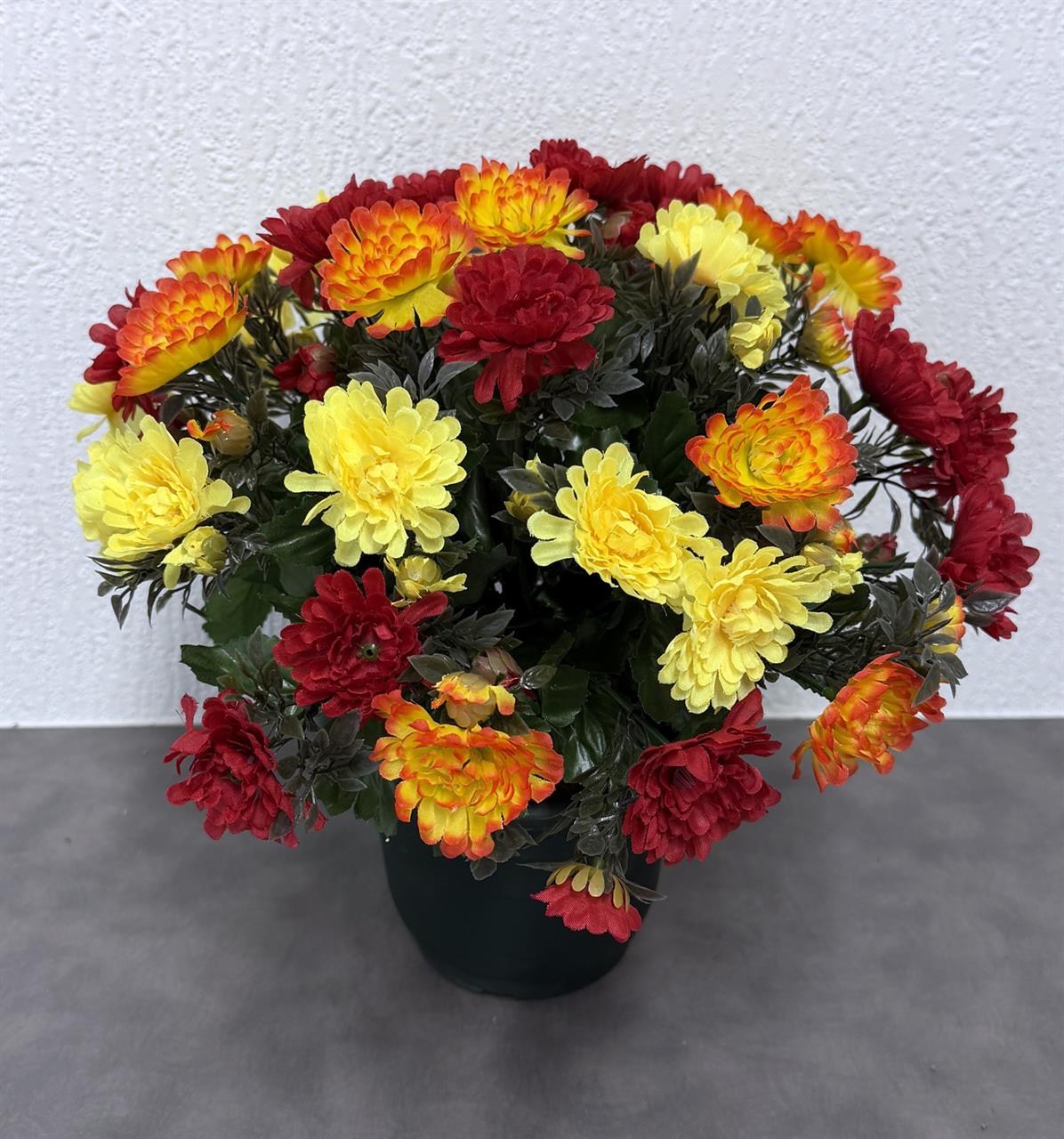 Composition de fleurs tergal dans un pot lesté. Dim : 27cm de hauteur : 27cm de large. ATTENTION : COMMANDE AU PLUS TARD LE SAMEDI JUSQU'A MIDI POUR LES OBSEQUES QUI ONT LIEU LE LUNDI. Nos articles en ligne sont exclusivement disponibles pour les funérailles que nous organisons. Aucun envoi par colis n'est proposé.
