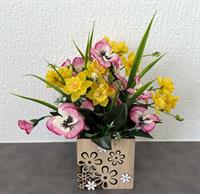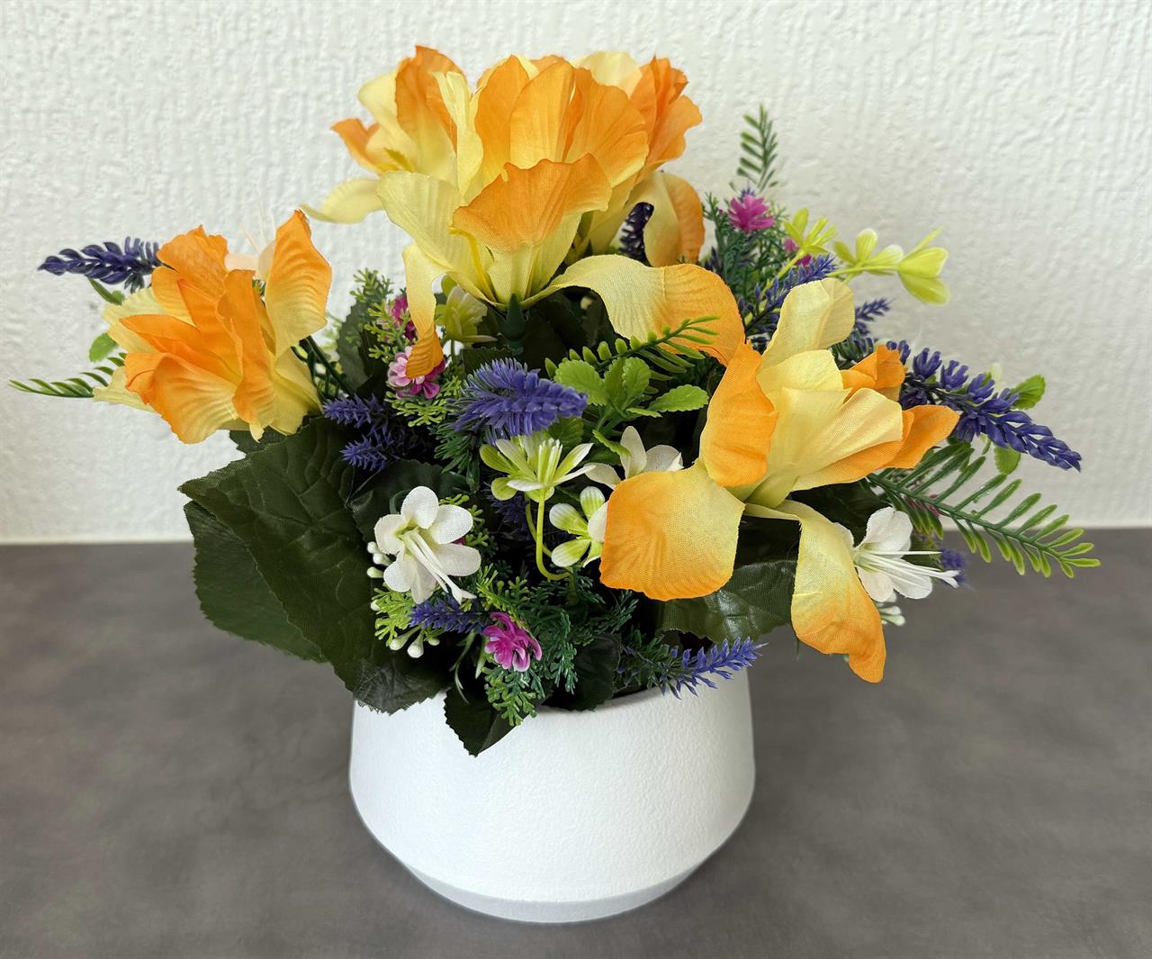 Composition de fleurs tergal dans un pot lesté avec des arômes. Dim : 50cm de hauteur : 35cm de large. ATTENTION : COMMANDE AU PLUS TARD LE SAMEDI JUSQU'A MIDI POUR LES OBSEQUES QUI ONT LIEU LE LUNDI. Nos articles en ligne sont exclusivement disponibles pour les funérailles que nous organisons. Aucun envoi par colis n'est proposé.