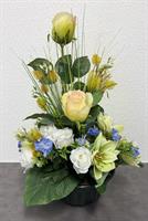 Composition de fleurs tergal dans un pot lesté avec des roses, arums et lys. Dim : 40cm de hauteur : 35cm de large. ATTENTION : COMMANDE AU PLUS TARD LE SAMEDI JUSQU'A MIDI POUR LES OBSEQUES QUI ONT LIEU LE LUNDI. Nos articles en ligne sont exclusivement disponibles pour les funérailles que nous organisons. Aucun envoi par colis n'est proposé.