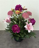 Composition de fleurs tergal dans un pot lesté avec des roses. Dim : 35cm de hauteur : 35cm de large. ATTENTION : COMMANDE AU PLUS TARD LE SAMEDI JUSQU'A MIDI POUR LES OBSEQUES QUI ONT LIEU LE LUNDI. Nos articles en ligne sont exclusivement disponibles pour les funérailles que nous organisons. Aucun envoi par colis n'est proposé.