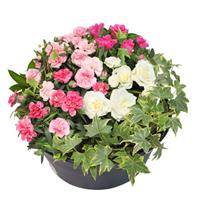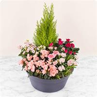 Composition pastel avec 5 - 6 plantes et fleurs de saison - Diamètre env. 40 cm - Convient pour les cimetières