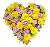 Eclatant cœur de fleurs de saison colorées - Env. 45 cm - Ruban inclus avec 50 caractères max -