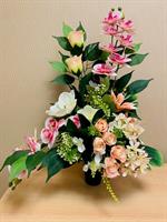 Coupe rose lestée Hauteur pot + fleurs 50 cm Lys Roses roses Renoncules....