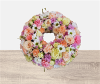 Fleurs fraîches. Couronne de fleurs avec des couleurs pastel. (Fleurs de saison)