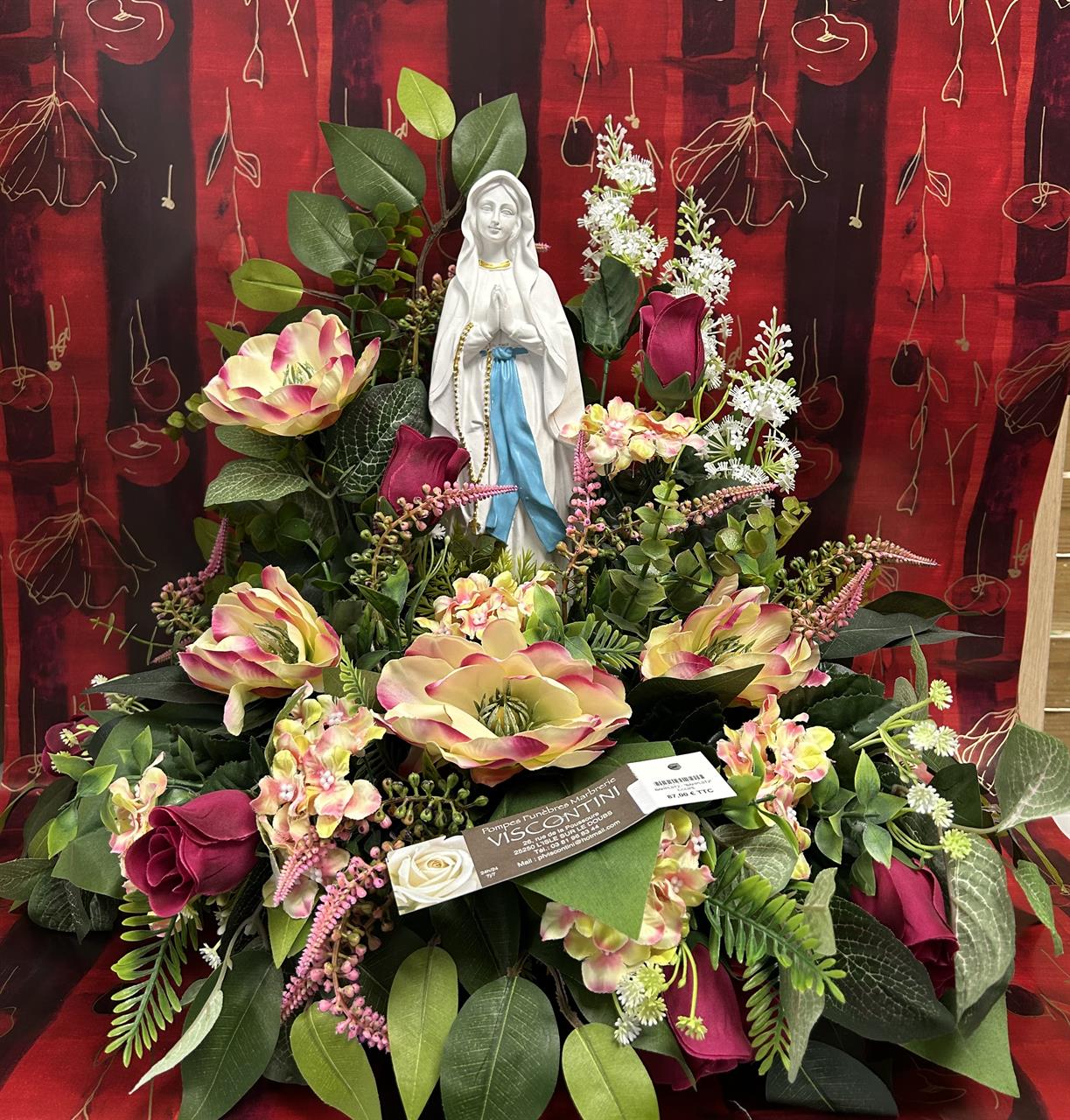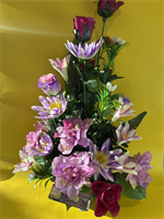 Composition en fleurs naturelle en forme trio de fleurs ( 110/60 cm), avec soit une dominante de Rouge, ou Rose, ou Blanc, merci de nous préciser Disponible sur commande la veille pour le lendemain sauf accord de notre partenaire pour délais plus court.