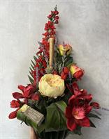 Composition en fleurs naturelle en forme de barque ( 50-60 cm), avec soit une dominante de Rouge, ou Rose, ou Blanc, merci de nous préciser Disponible sur commande la veille pour le lendemain sauf accord de notre partenaire pour délais plus court.