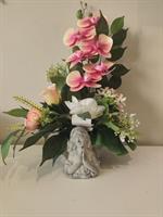 niet-contractuele foto | Composition artificielle Ange Ange pierre Magnolia artificiel blanc/saumon