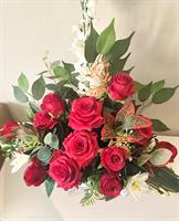 niet-contractuele foto | Jardinière Roses Rouges Artificielles Jardinière 25 cm roses rouges artificielles et boutons