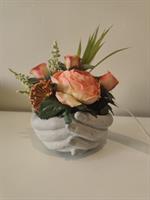 niet-contractuele foto | Mains renoncule artificiel Mains en pierre renoncule et rose rouge artificiels
