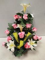 | Potée de fleurs artificielles Potée en fleurs artificielles, mélange de roses rose et de lys.
