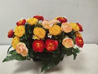 | Potée de roses artificielles Potée de roses artificielles dans les tons orangés et jaunes.