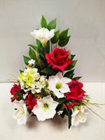 | Bouquet lesté en fleurs artificielles Bouquet lesté mélange de roses rouges et lys blancs.