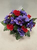 | Potée en fleurs artificielles Potée de violettes et roses rouges.