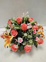 | Potée en fleurs artificielles Mélange de fleurs dans les tons oranges et roses.