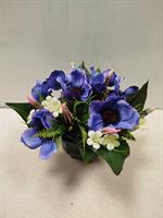| Potée de fleurs artificielles Mélange de fleurs dans les tons roses et bleus.